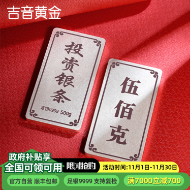 吉音 999.9足银银锭银砖白银摆件蛇年投资银条500g收藏馈赠节日礼物 500克