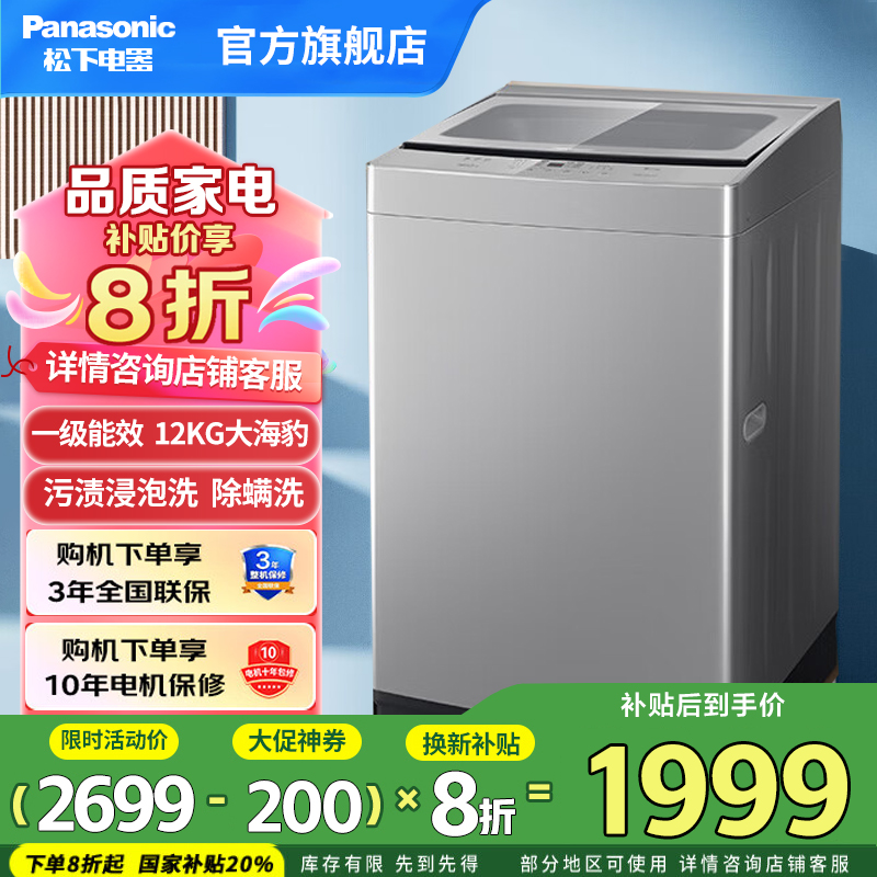 松下波轮洗衣机全自动 12公斤大海豹大容量家用 抗菌除螨 毛毯羽绒洗 桶洁净防污染 新品 XQB120-K2M1