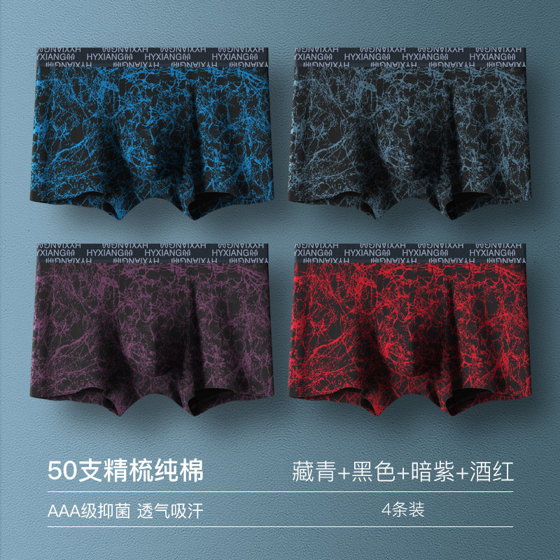 恒源祥男士纯棉内裤男石墨烯四角裤衩男生大码宽松平角短裤头_103 170/L 4776【纯棉抗菌】黑色/暗紫/藏青/酒红