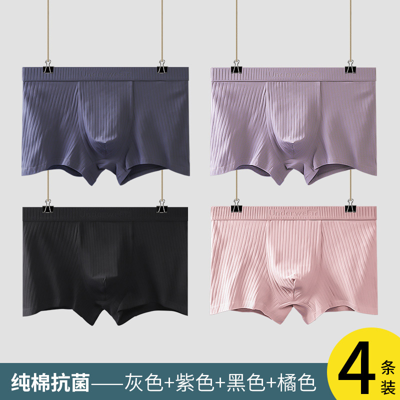 恒源祥纯棉内裤男士平角裤中腰条纹网眼四角短裤夏季薄款无痕透气 XL/175 C/灰紫黑橘
