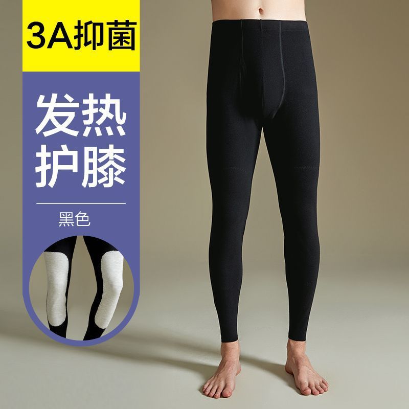 恒源祥保暖裤男士德绒发热秋裤含山羊绒护膝冬季打底衬裤线裤_1 185/3XL【德绒/山羊绒护膝】 抗菌】黑色(单件)