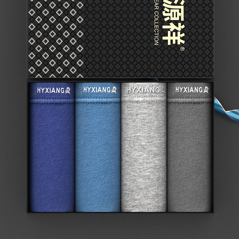 恒源祥纯棉内裤男士平角裤中老年人四角裤男款加大码宽松短裤_1_219 4XL/190 两藏青两深蓝【4条装】