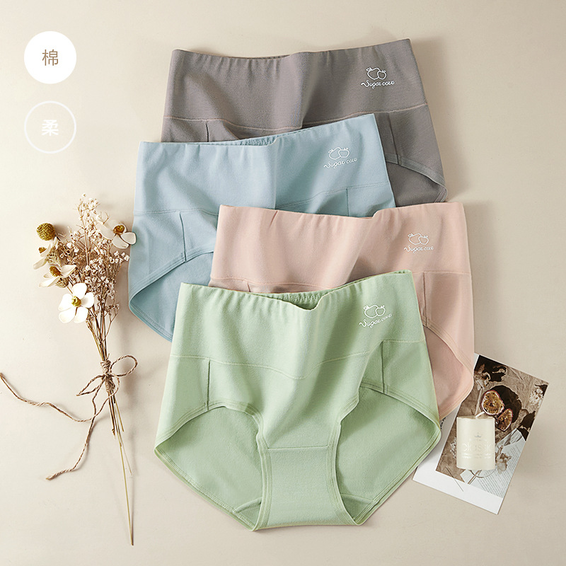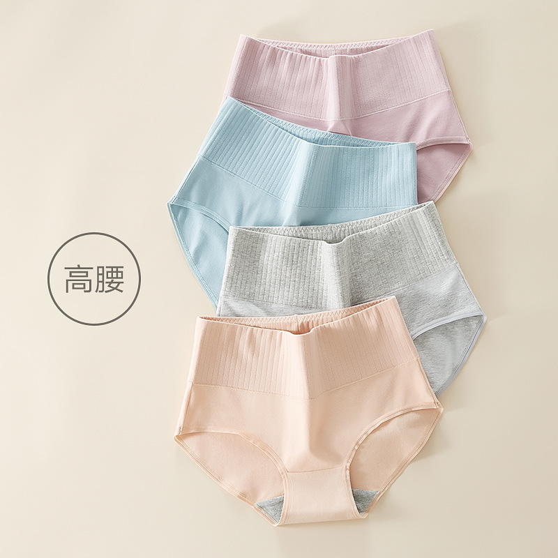 恒源祥高腰内裤女纯棉收腹裤夏棉薄款提臀内裤透气三角短裤 170/XL 豆沙-雾霾蓝-花纱灰-经典肤