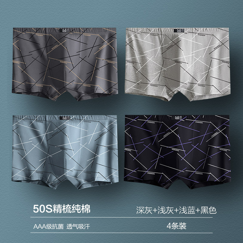 恒源祥男士内裤男纯棉平角裤透气宽松薄款青年男生四角短裤头_541 170/L【推荐90-120斤】 【AAA抗菌1180B】深灰+浅灰+雾蓝+黑色
