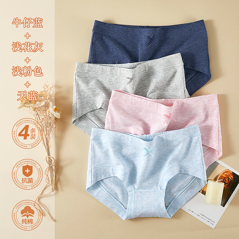 恒源祥内裤女士纯棉女生少女短裤头中腰三角裤春夏季棉薄款 160/M 牛仔蓝+天蓝+浅花灰+浅粉色