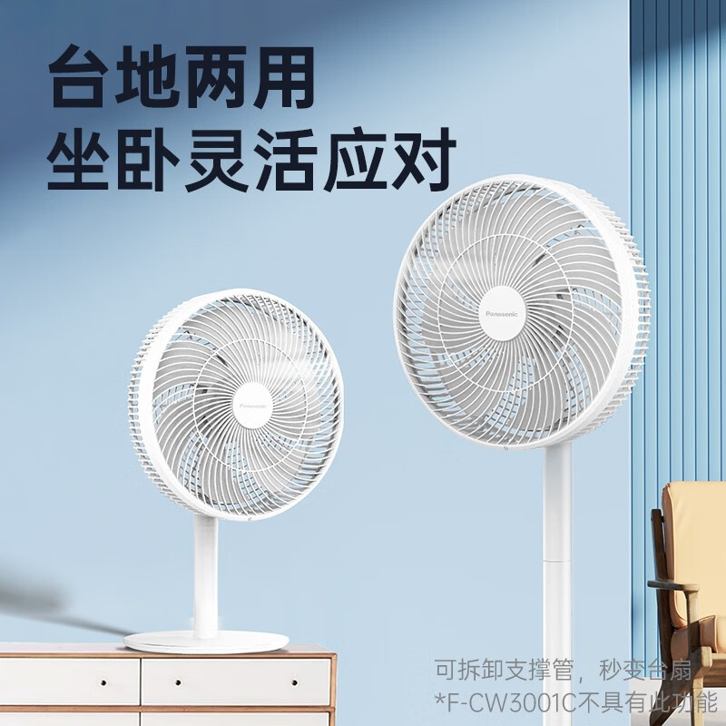 松下电风扇家用台式台立两用桌面遥控定时变频广角大风力落地扇