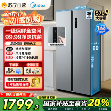 美的(Midea)570升双开门对开门一级能效节能双变频风冷无霜大容量家用电冰箱以旧换新BCD-570WKPM(E)