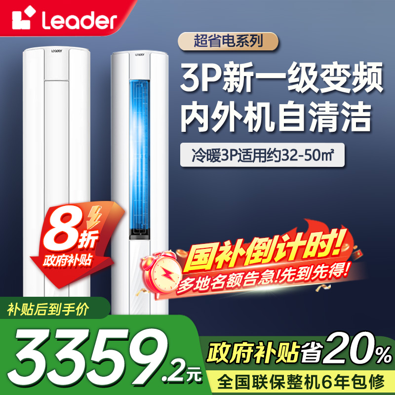 统帅(Leader)海尔智家出品空调 超省电新品 超一级能效 家用变频立式空调柜机 内外机自清洁 3匹一级能效 超省电