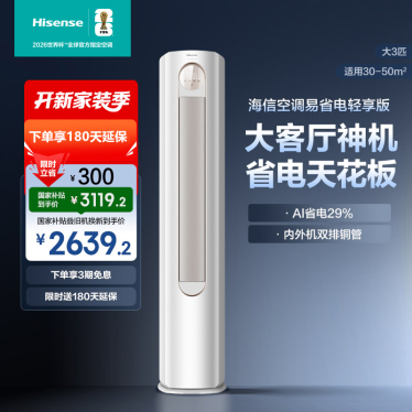 海信 3匹 易省电A151 AI省电 速冷热 风量天花板 15米送风立式客厅柜机家用空调KFR-72LW A151-X1