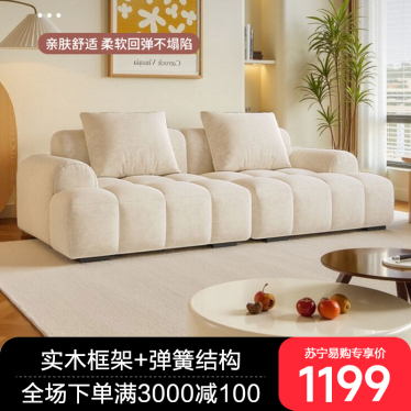 沙发客厅奶油风沙发科技布艺小户型现代简约 三人位【2.1米】 科技布【海绵坐垫】