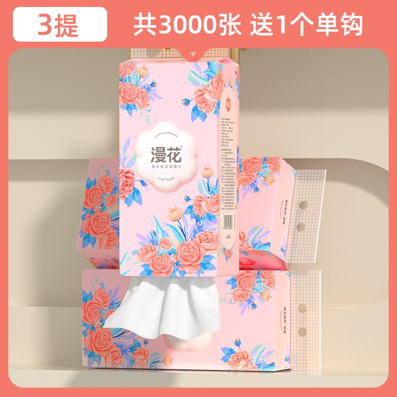 漫花大包悬挂式抽纸整箱批餐巾纸家用实惠装厕纸擦手卫生纸巾 漫花湘妃挂抽1000张*3提