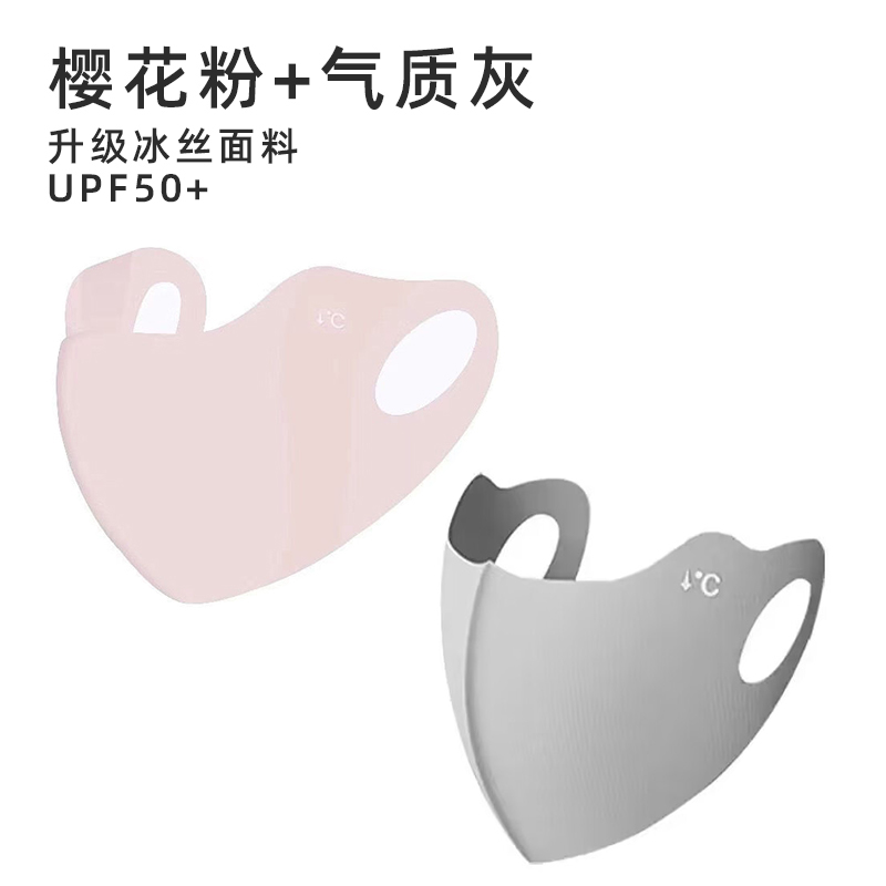 防紫外线冰丝口罩夏天轻薄立体无痕高颜值冰皮防晒口罩护脸冰凉感 粉+蓝+灰+黑冰丝面料清凉透气
