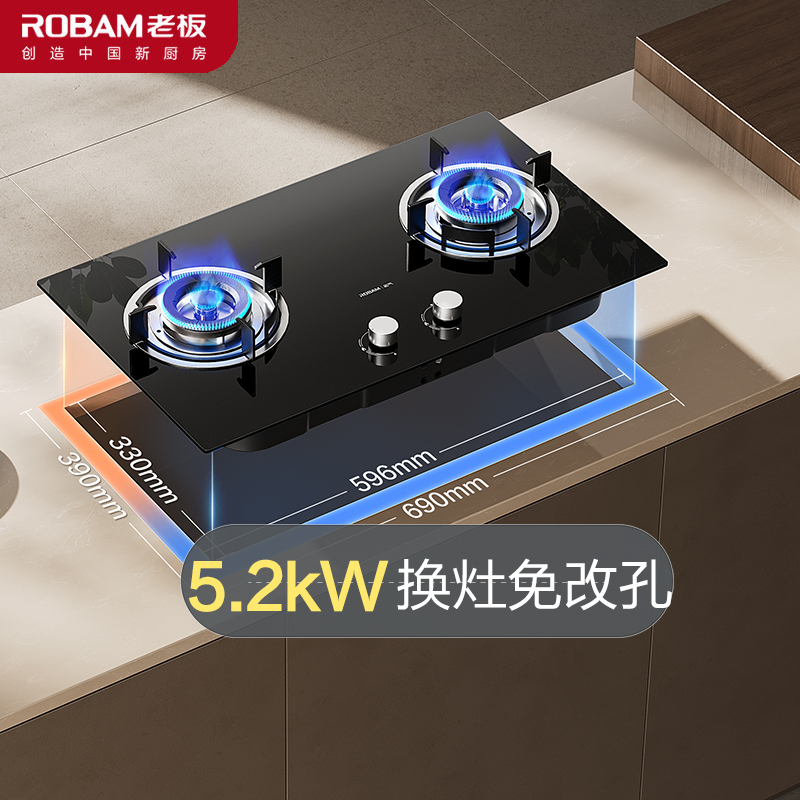 老板(Robam)名气系列20B2A家用燃气灶天然气双灶嵌入式煤气灶5.2kW可调节小尺寸灶具灶台猛火灶燃气灶一级能效