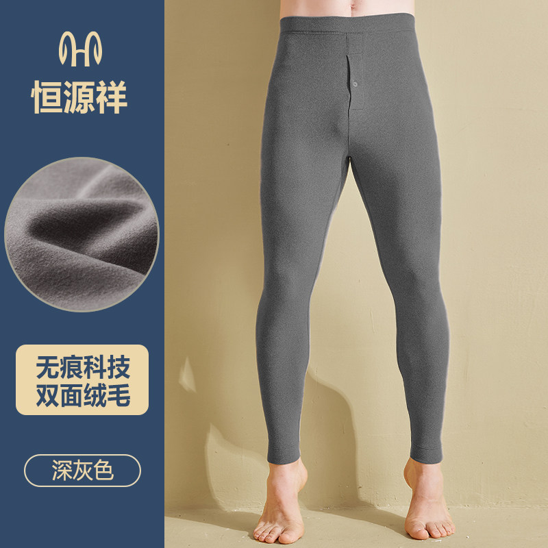 恒源祥无痕保暖裤男士发热德打底裤内穿加绒加厚秋裤2021年新款 170(L) 深灰