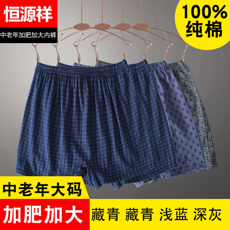恒源祥男士内裤纯棉平角裤加肥加大宽松高腰爸爸短裤男中老年人_203 5XL 藏青+藏青+浅蓝+深灰