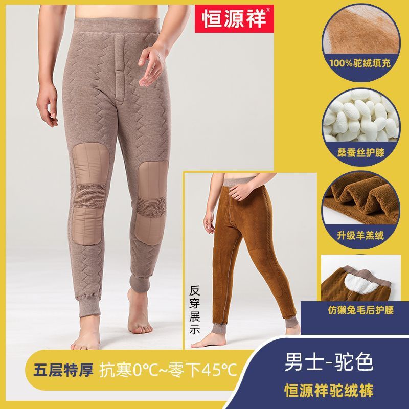 恒源祥驼绒棉裤男加绒加厚中老年高腰毛裤保暖裤东北大码冬季 XL 男士-驼色-100%驼绒