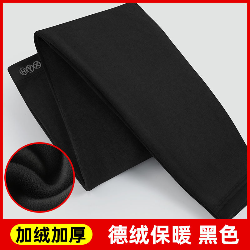 恒源祥男士德绒保暖棉裤含羊毛裤护膝秋裤打底加厚加绒裤秋冬毛裤 170/L 德绒加厚-黑色-保暖裤