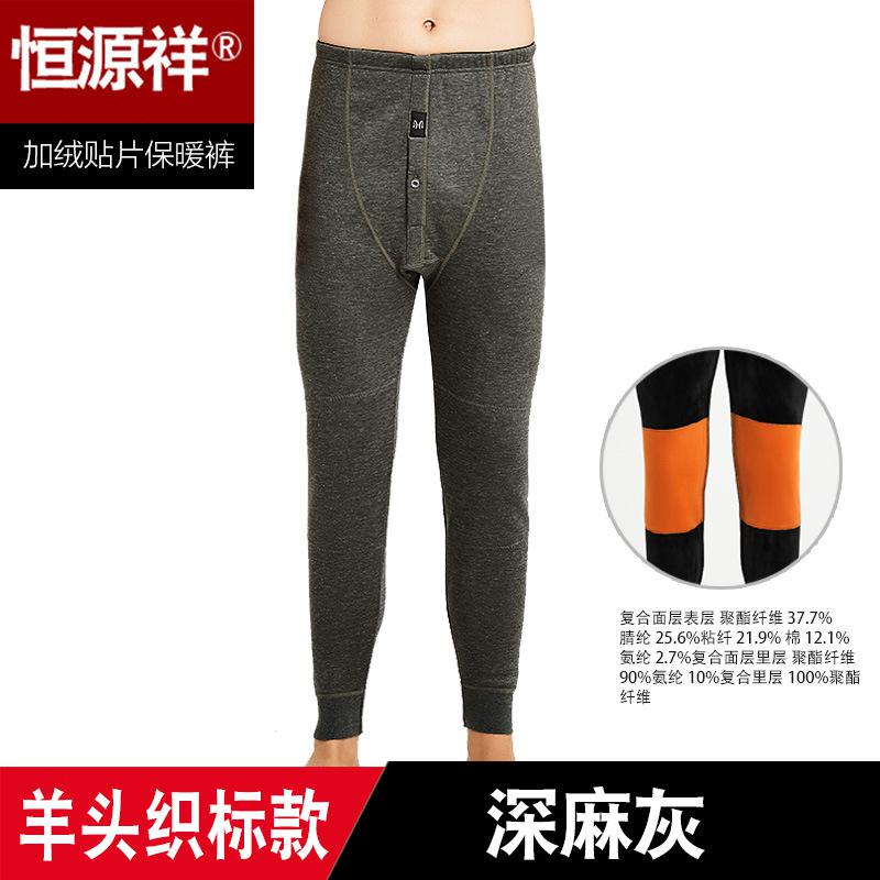 恒源祥男士保暖裤加绒加厚棉质秋裤棉毛裤毛裤打底线裤长护膝秋冬_385_76 185(XXXL) 德绒发热纤维羊头标深麻灰