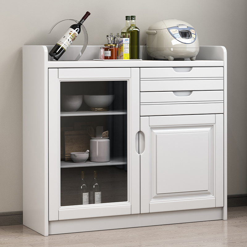 青木川 实木餐边柜酒柜一体靠墙带门矮柜1.2米餐厅家用厨房碗柜收纳储物茶叶柜备餐资料柜办公室茶水柜 三门白色
