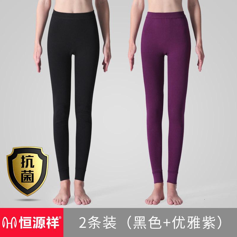 恒源祥纯棉女士秋裤春秋薄款大码内穿打底线裤新款衬裤紧身保暖裤_354 175/XL 黑色+优雅紫