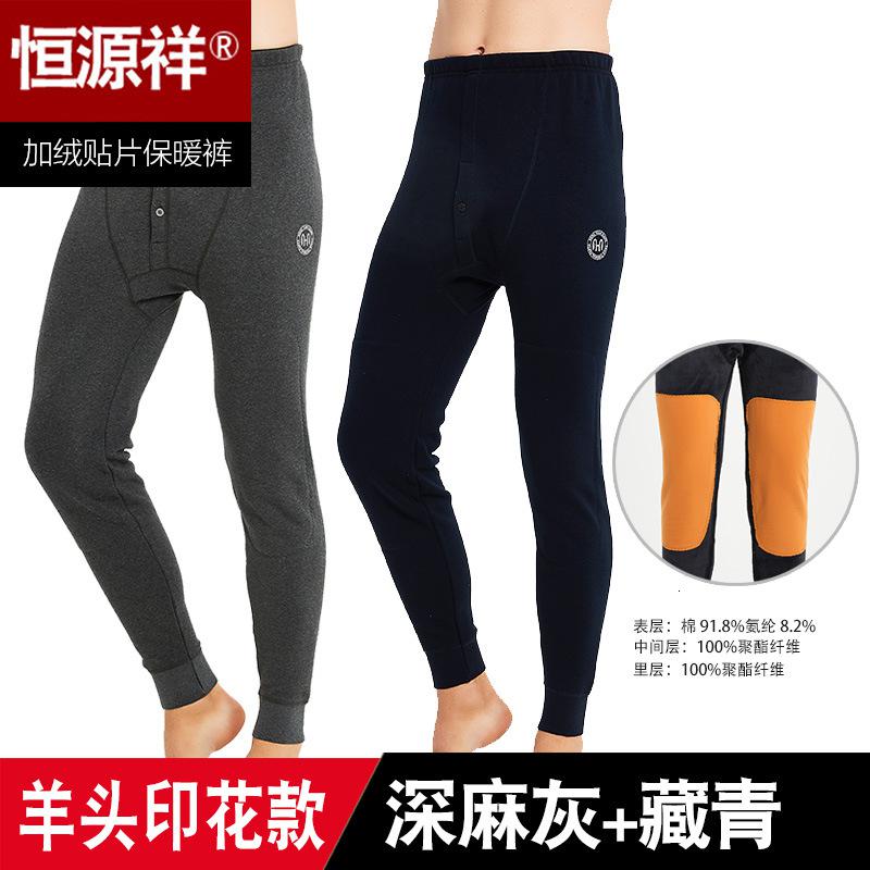 恒源祥男士保暖裤加绒加厚棉质秋裤棉毛裤毛裤打底线裤长护膝秋冬_385_76 180(XXL) 棉质羊头印花(深麻灰+藏青)