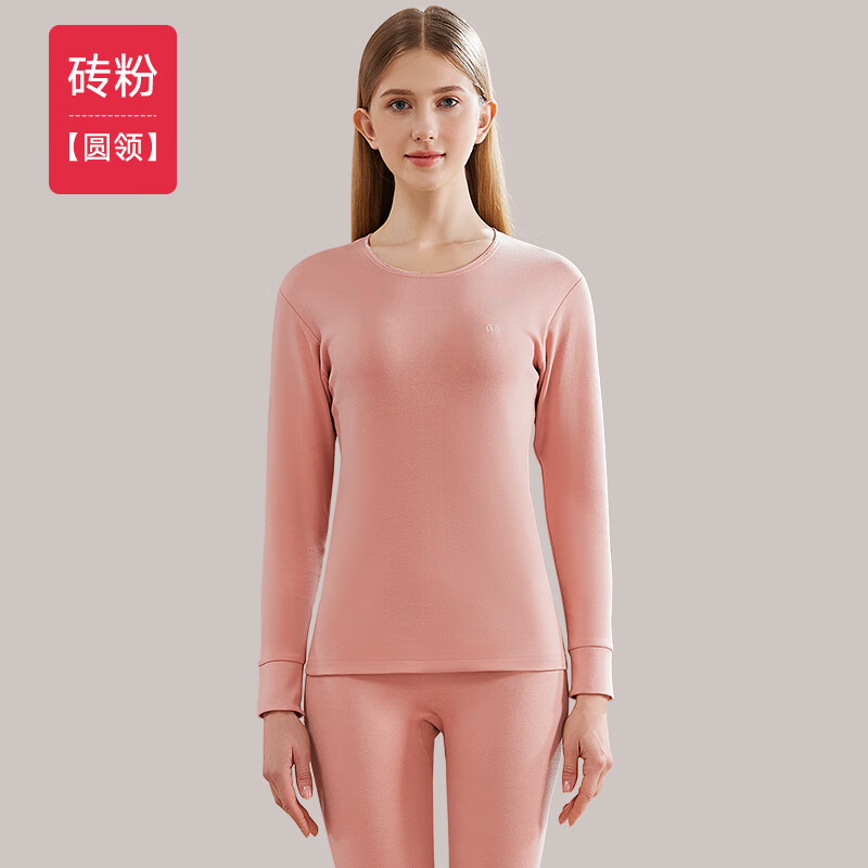 恒源祥秋衣秋裤女套装冬季保暖衣女士线衣线裤加厚无痕棉内衣女款_986_917 160/85 圆领【砖粉单套】