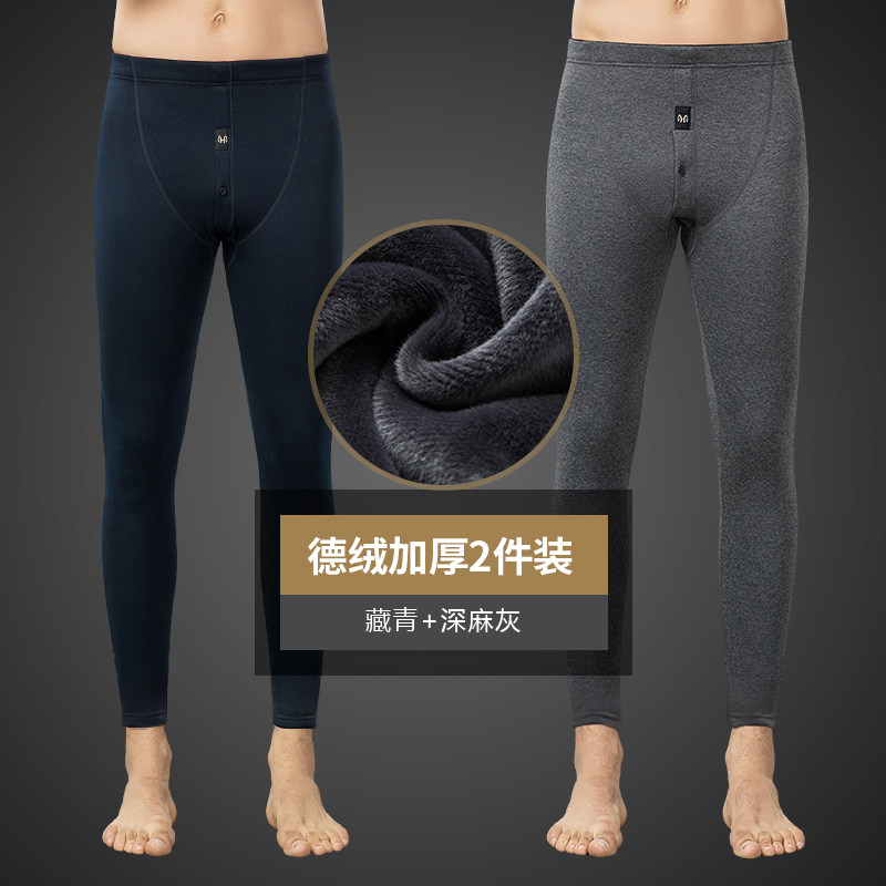 恒源祥保暖裤男士加厚加绒裤线裤衬裤打底裤秋冬内裤棉裤毛裤秋裤 180(XXL)是 藏青+深麻灰