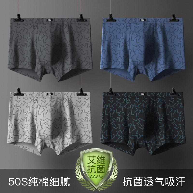 恒源祥男士内裤纯棉平角裤男加大码四角短裤头棉男生宽松夏 XXXL 4742碳灰+灰兰+浅灰+黑色
