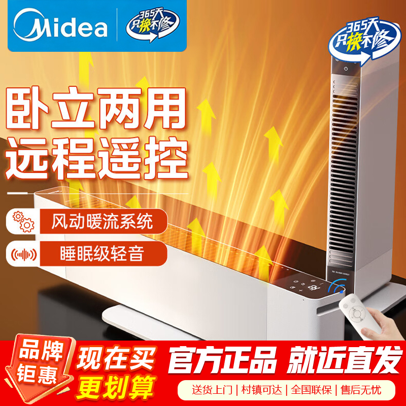 美的石墨烯踢脚线电热取暖器暖风机超薄风暖大面积电暖气家用浴室电暖器地暖全屋升温 [串铝加热 一机抵两台]NDT-MQ