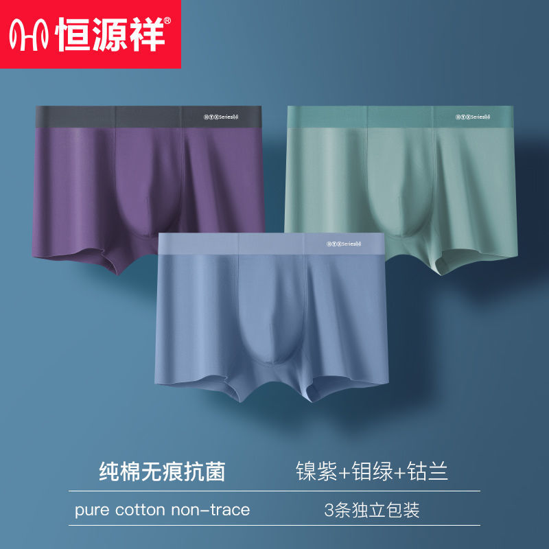 恒源祥男士内裤纯棉透气平角裤男生大码宽松棉无痕四角短裤 190/4XL 【3条装】镍紫+钼绿+钴兰
