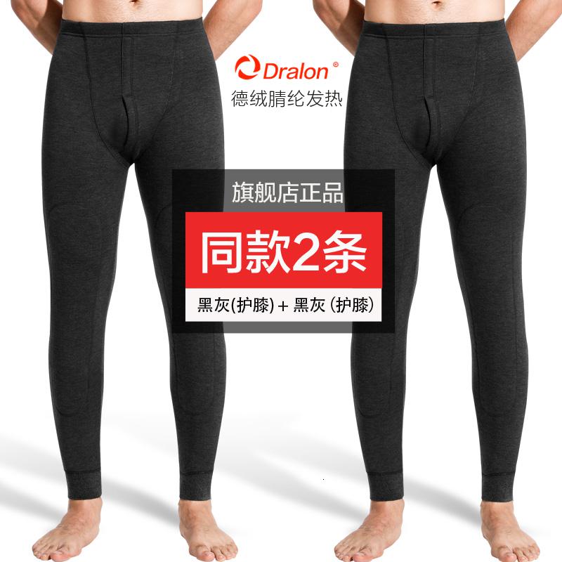 恒源祥加绒加厚保暖裤男士德绒冬季含羊毛护膝打底棉毛线秋裤绒裤_560 170/L【德绒发热纤维保暖】 加厚德绒(黑灰+黑灰)羊毛护膝
