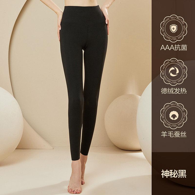 恒源祥保暖裤女士紧身无痕德绒自发热打底秋裤薄款冬季含羊毛线裤_243 175/XXL 神秘黑