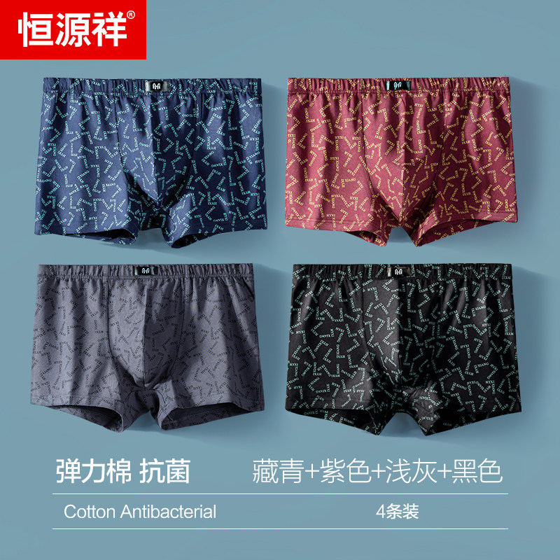 恒源祥男士内裤男纯棉四角短裤头裤衩透气底裤潮流男生平角裤