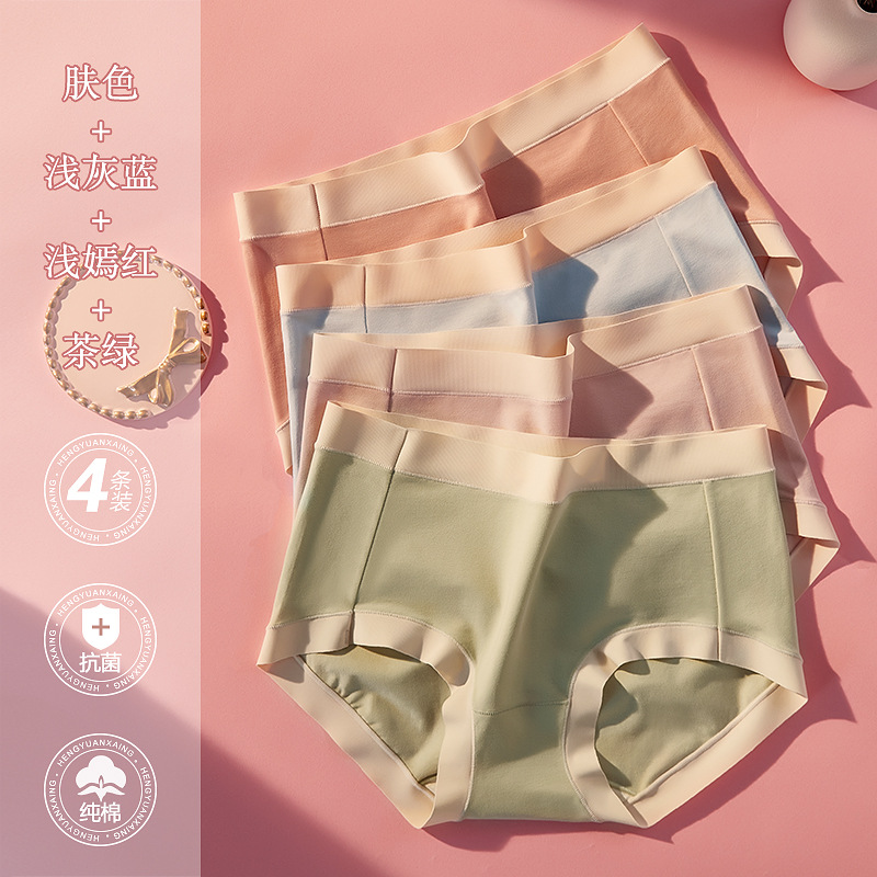 恒源祥女士内裤女纯棉棉透气夏季薄款中腰少女无痕三角裤头 160/M 浅嫣红/浅灰蓝/茶绿/肤色