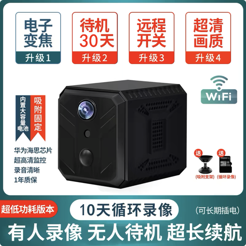 送128G监控内存卡 不插电充电摄像头无线免插电家用室外远程连手机高清夜视电池监控 超长续航WIFI版+手机远程开关机