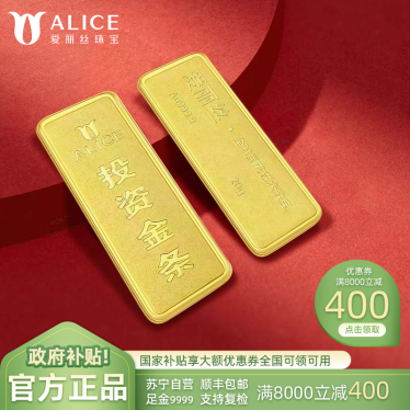 ALICE爱丽丝珠宝 黄金金条10g足金9999纯金投资金条收藏储值黄金生日礼物 10g 10克