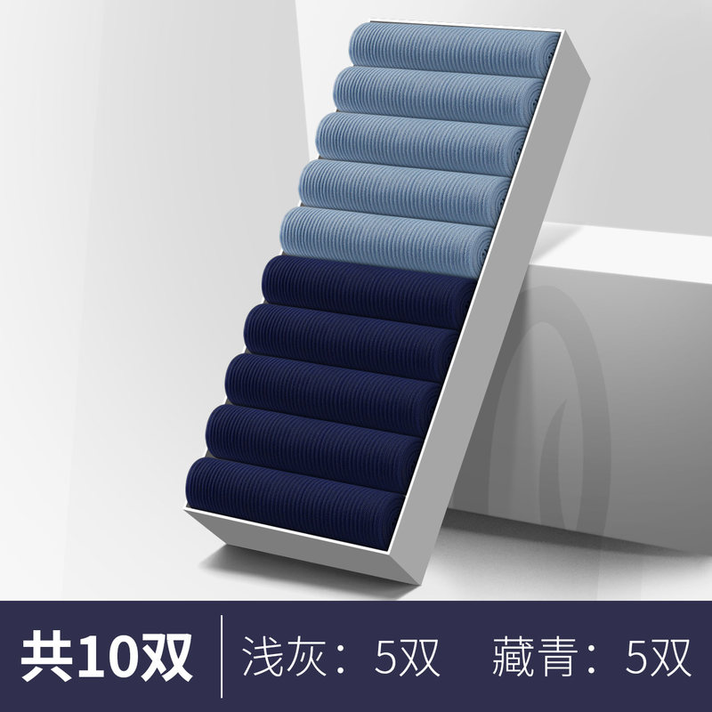 恒源祥男士丝袜短袜冰丝中筒防臭春秋薄款超薄隐形全透明男袜夏季 均码 【10双装】藏青5+浅灰5
