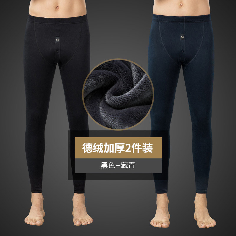 恒源祥保暖裤男士加厚加绒裤线裤衬裤打底裤秋冬内裤棉裤毛裤秋裤 190(XXXXL)是 黑色+藏青