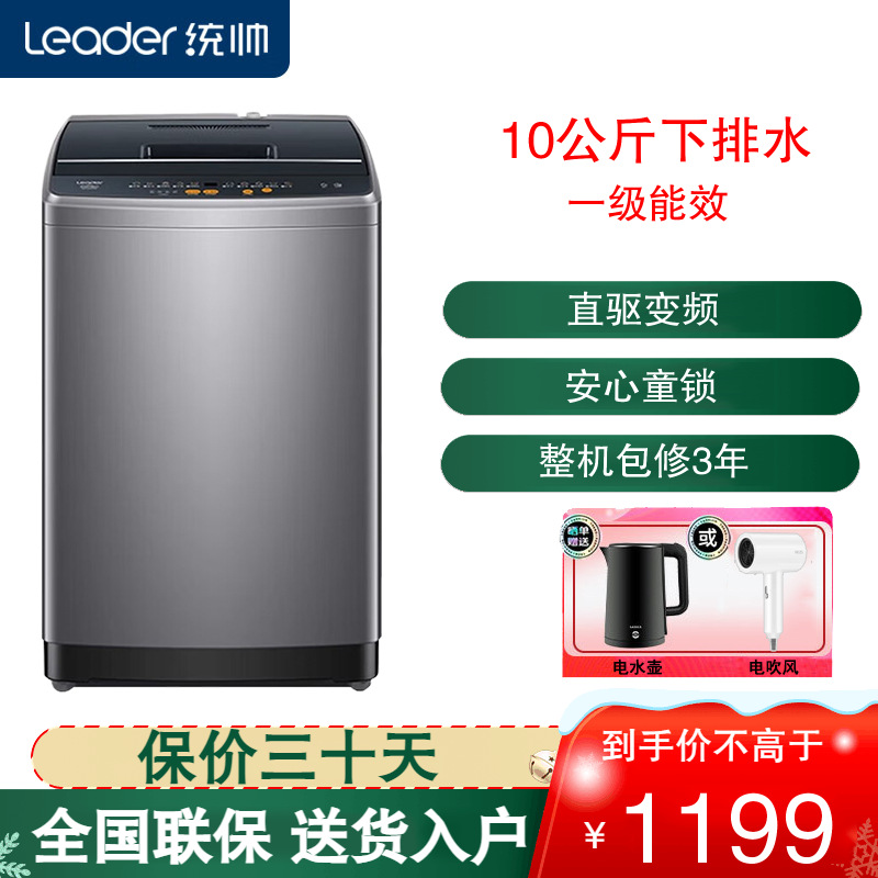 统帅(Leader)海尔出品波轮洗衣机 10公斤洗衣容量全自动 直驱变频电机 健康除螨洗@B100BM958
