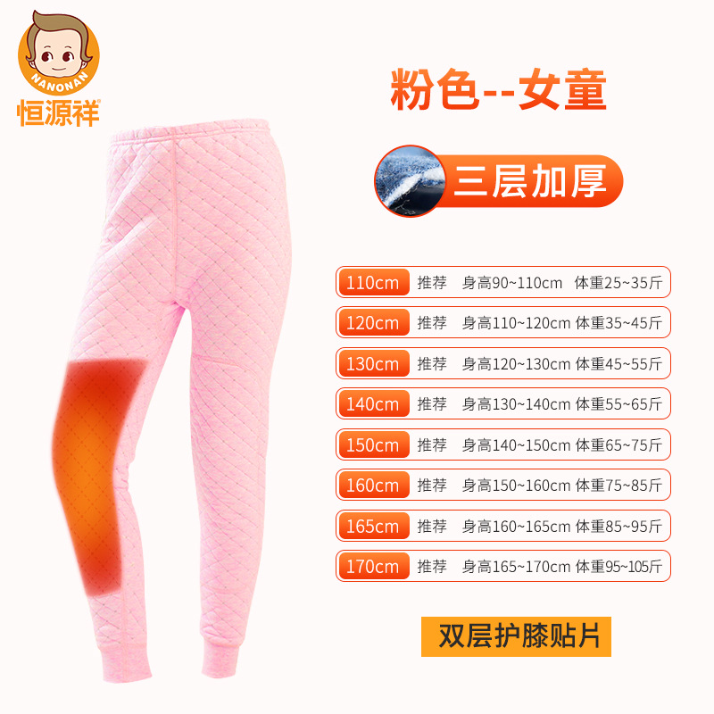 恒源祥儿童保暖裤男童女童内穿棉裤秋冬加绒加厚大童纯棉夹棉秋裤 110cm 【女童】粉色