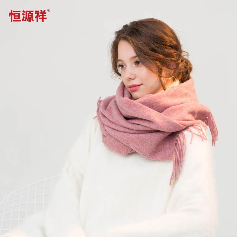 恒源祥女士羊毛围巾秋冬季纯色披肩长款韩版百搭保暖加厚围脖礼盒_213 香芋粉