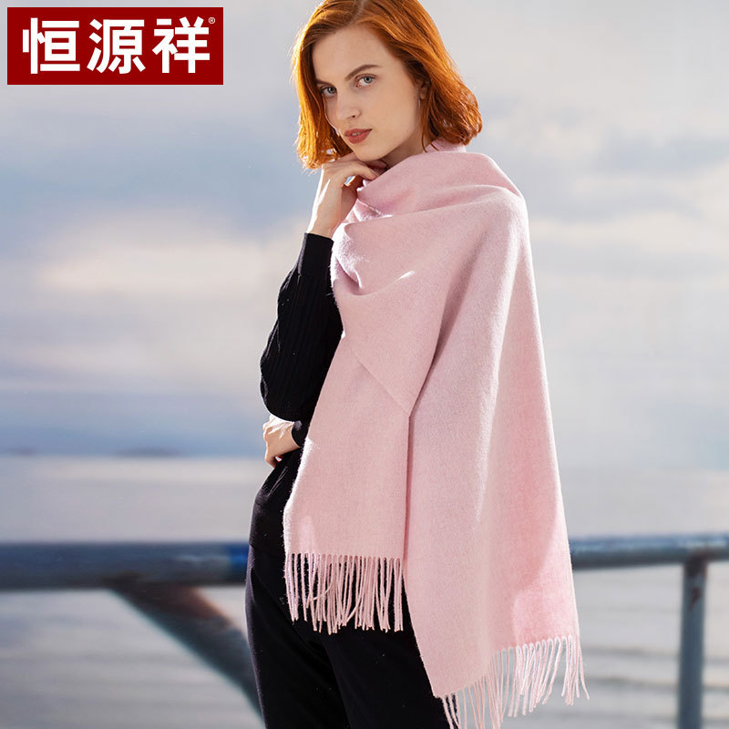 恒源祥羊毛围巾女秋冬季保暖加长加宽围脖小披肩两用纯色_359 粉色45*196cm