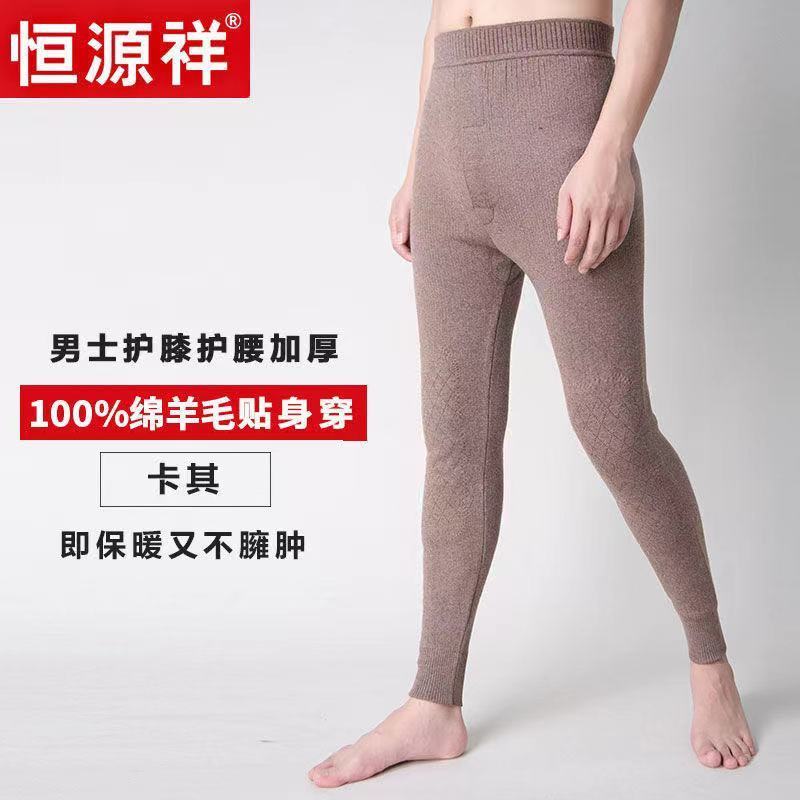 恒源祥羊毛裤男女冬季加厚护膝护腰打底裤女内穿高腰羊毛保暖裤子 2XL 卡其色男护膝护腰款