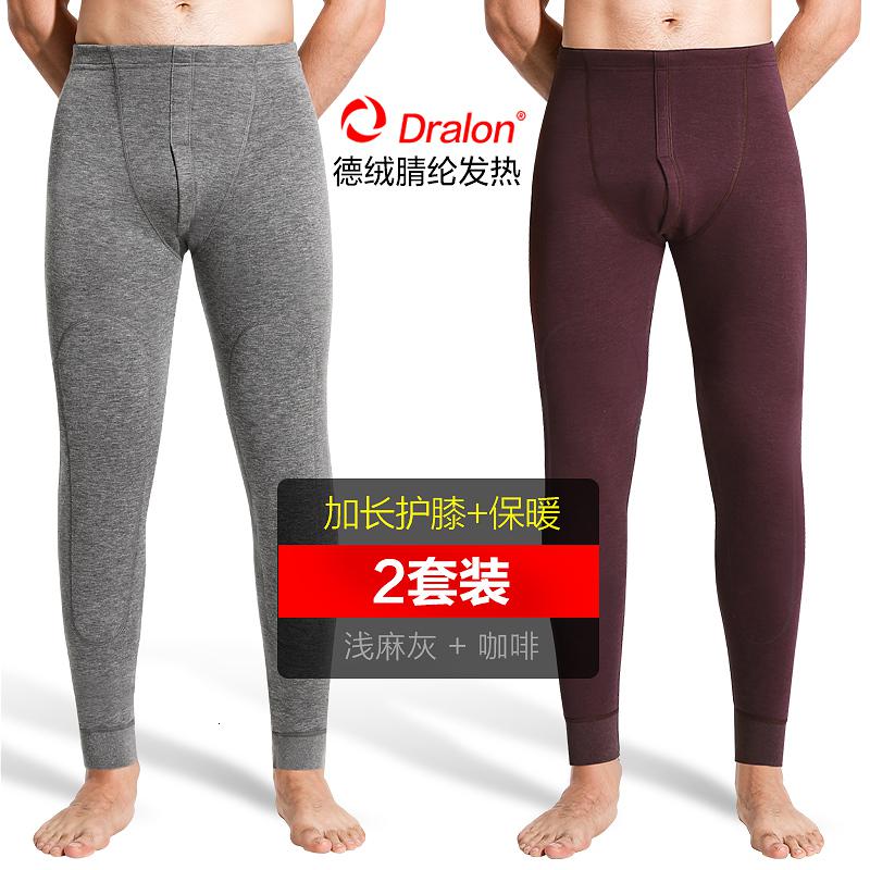 恒源祥加绒加厚保暖裤男士德绒冬季含羊毛护膝打底棉毛线秋裤绒裤_560 190/4XL【德绒发热纤维保暖】 加厚德绒(浅麻灰+咖啡)羊毛护膝