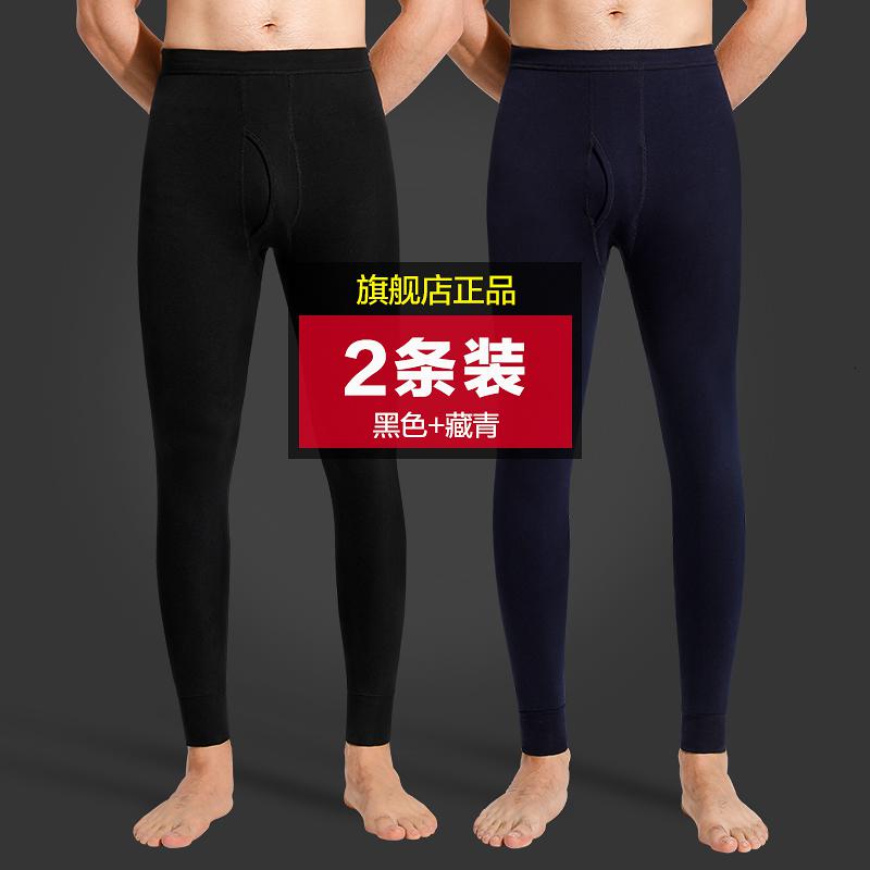 恒源祥秋裤男士纯棉单件秋冬内穿打底衬裤薄款保暖全棉毛裤线裤潮_810_978 175/XL 暗根(黑色+藏青)