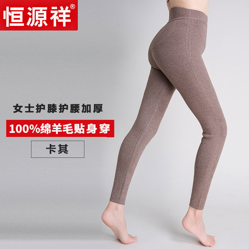 恒源祥羊毛裤男女冬季加厚护膝护腰打底裤女内穿高腰羊毛保暖裤子 3XL 卡其色女护膝护腰款