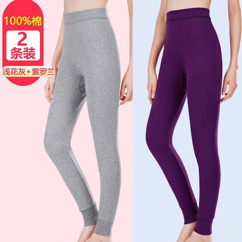 恒源祥秋裤女薄款纯棉中老年保暖裤女士宽松棉毛裤单件中高腰 L170 浅花灰+紫罗兰两条装