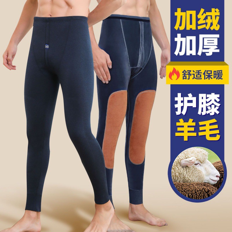 恒源祥秋裤男超厚羊毛护膝保暖裤男士加绒加厚打底裤棉裤冬季 3XL 【单条装】藏青