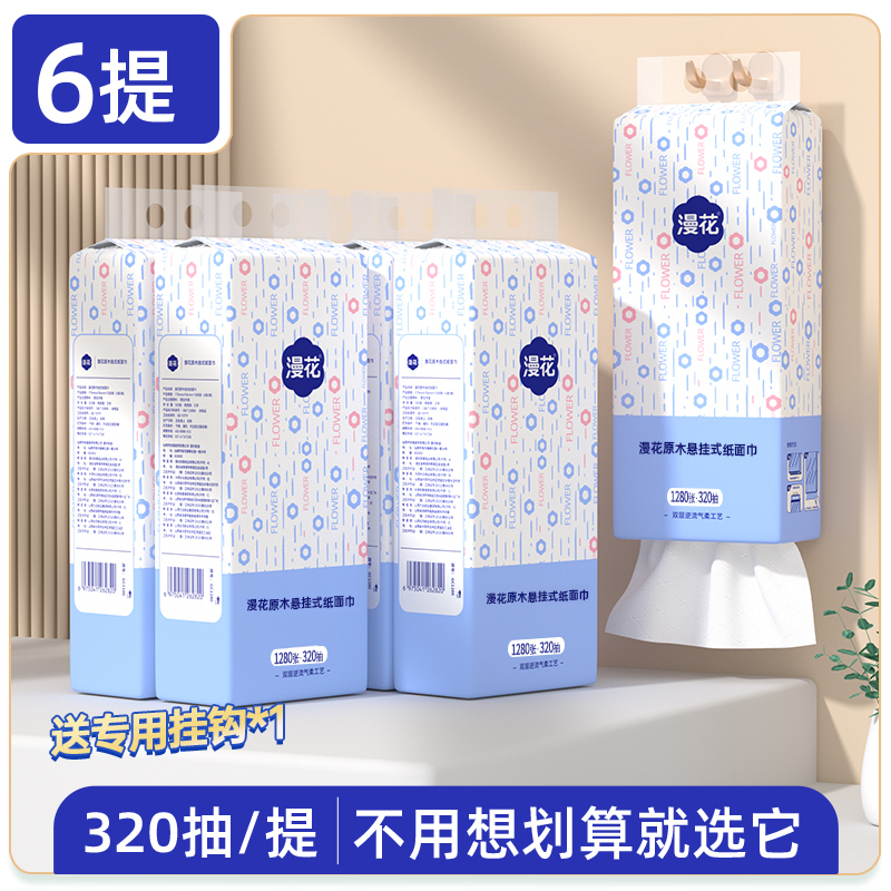 漫花悬挂式抽纸巾家用实惠装厕所卫生纸学生宿舍大包纸面巾餐巾纸 漫花原木挂抽1280张*2提