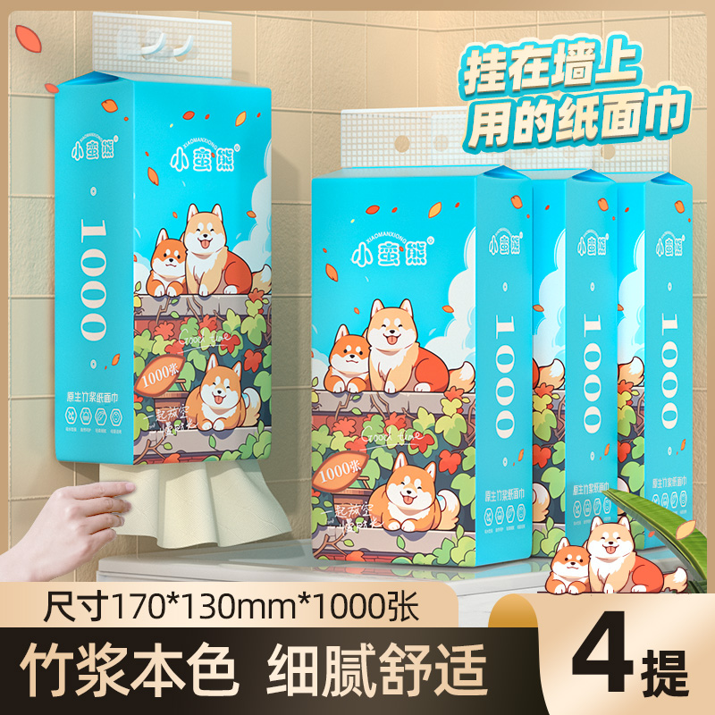 漫花小蛮熊柴犬1000张悬挂式抽纸可爱家用抽取式面巾纸卫生纸 1000张*4提(家庭装)